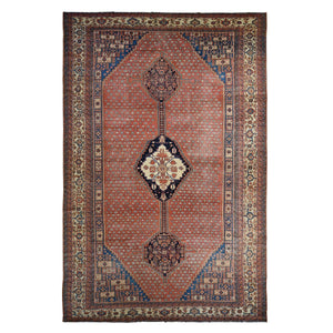 12'6"x19'6" Dark Coral, Antique Persian Bakshaish With Geometric Anchored Medallion Design, Even Wear, Clean, Good Condition, Sides And Ends Secured, 100% Wool, Hand Knotted, Xl Long And Narrow, Oriental Rug FWR469656