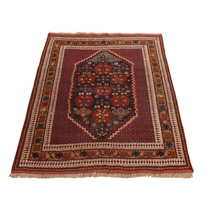 4'6"x6'7" Midnight Blue With A Mix Of Red, Antique North West Persian With Double Medallion Design, Geometric Design, Clean And In Excellent Condition, 100% Wool, Hand Knotted, Oriental Rug FWR469812