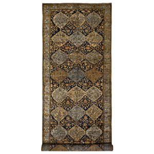6'8"x19'3" Midnight Blue With Yellow, Antique Persian Bakhtiari In An Excellent Condition, Diamond Shape Garden Medallion Design, Hand Knotted, Pure Wool, Gallery Size Wide Runner, Oriental Rug FWR469932