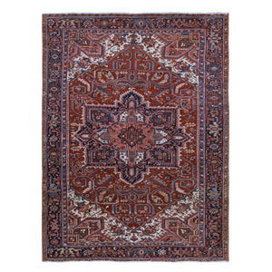 8'9"x12'3" Scarlet Red, Antique Persian Heriz, Clean, Excellent Condition, Light And Dark Side Highlights, Soft With Sides And Ends Secured, Full Pile, 100% Wool, Hand Knotted Oriental Rug FWR469944