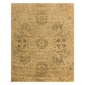 7'9"x10'1" Earth Tone Colors, Arts And Crafts Design, Undyed Natural Wool, Zero Pile, Distressed, Shaved Low, Hand Knotted, Oriental Rug FWR457158