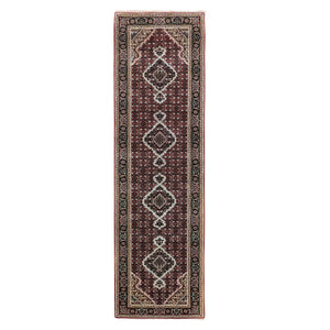 • 2'8"x10'2" Red Tabriz Mahi Fish Design Wool Hand Knotted Runner Oriental Rug FWR349932