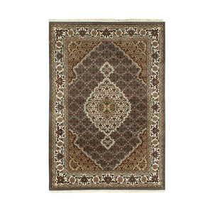 • 4'1"x6' Grey Hand Knotted Wool Tabriz Mahi Fish Design Oriental Rug FWR352836