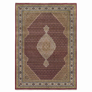 10'x13'10" Mahogany Red With Beaver Brown, Tabriz Mahi With Fish Medallion Design, Hand Knotted, 175 Kpsi, Organic Wool, Oriental Rug FWR394614