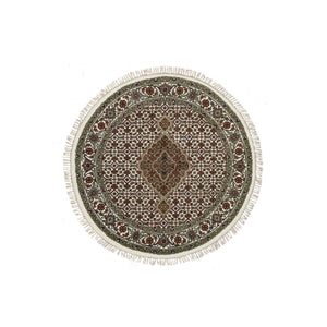 3'4"x3'4" Porcelain White, 175 Kpsi, Pure Wool, Tabriz Mahi With Fish Medallion Design, Hand Knotted, Round Oriental Rug FWR394722