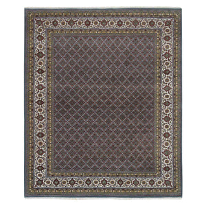 8'1"x10' Black Coral Gray, 175 Kpsi, Organic Wool, All Over Fish Herati Criss Cross Design, Hand Knotted, Oriental Rug FWR394752