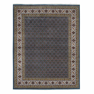 8'x10'4" Mavericks Blue And Shadow White, Herati Criss Cross All Over Fish Design, Hand Knotted, 175 Kpsi, 100% Wool, Oriental Rug FWR394758