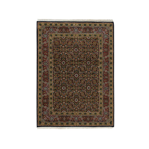 4'1"x5'9" Asphalt Black And Sangria Red, 175 Kpsi, 100% Wool, Hand Knotted, All Over Fish Mahi Herati Design, Oriental Rug FWR394824