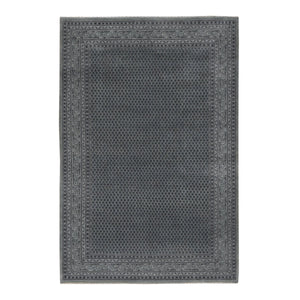 6'x9' Battleship Gray, Sarouk Mir Small Repetitive Boteh Design, Wool And Silk, Hand Knotted, Oriental Rug FWR485844
