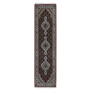 2'8"x10'5" Sangria Red, Tabriz Mahi, Pure Wool, Hand Knotted, Runner Oriental Rug FWR526350