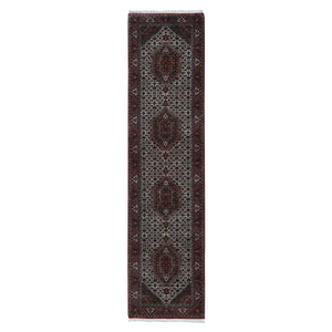 2'9"x11'4" Ivory, Hand Knotted, 300 Kpsi, Hand Spun New Zealand Wool, Bijar Mahi, Runner Oriental Rug FWR526368