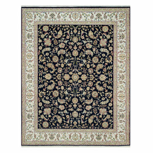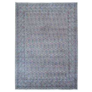 7'9"x10' Space Cadet Blue, Wool And Silk, Hand Knotted, Nain With All Over Flower Design, 250 Kpsi, Oriental Rug FWR541896