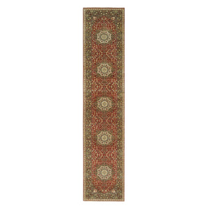2'7"x12'4" Upsdell Red With Kobicha Brown, Soft Pile, Natural Dyes, Antique All Wool Tabriz Haji Jalili Rug, Hand Knotted, Fine Weave, Runner Oriental Rug FWR541692