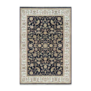 6'1"x9'1" Graphite Blue, Nain With All Over Flower Design, Hand Knotted, 250 Kpsi, Pure Wool, Oriental Rug FWR541866