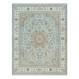 8'x10'1" Vulcan Blue, Hand Knotted, Nain With Center Medallion Flower Design, 250 Kpsi, Natural Wool, Oriental Rug FWR541920