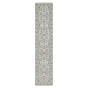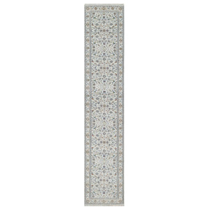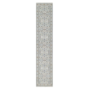 2'9"x14' Chiffon White, Wool And Silk, Nain With All Over Flower Design, Hand Knotted, 250 Kpsi, Runner, Oriental Rug FWR546066