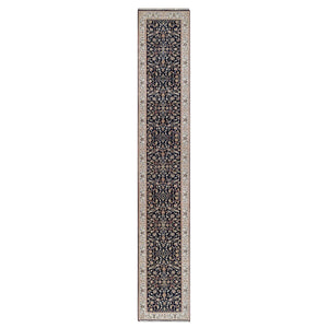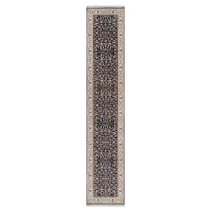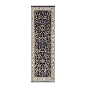 2'6"x13'3" Midnight Blue, Nain With All Over Flower Design, Wool And Silk, 250 Kpsi, Hand Knotted, Runner, Oriental Rug FWR546456