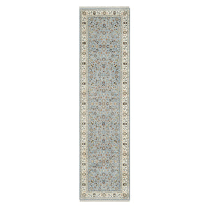 2'8"x10'3" Light Blue, 250 Kpsi, Nain With All Over Flower Design, Wool And Silk, Hand Knotted, Runner, Oriental Rug FWR546060