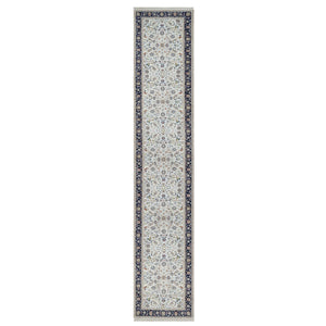 2'8"x12'2" Pearl White, Nain With All Over Floral Design, Wool And Silk, Hand Knotted, 250 Kpsi, Runner, Oriental Rug FWR545946