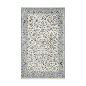 5'x8' Beau Blue, Wool And Silk, Nain With All Over Flower Design, 250 Kpsi, Hand Knotted, Oriental Rug FWR546312