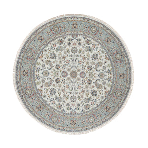 9'8"x9'8" Alabaster White, Nain With All Over Floral Design, Wool And Silk, Hand Knotted, 250 Kpsi, Round, Oriental Rug FWR546450