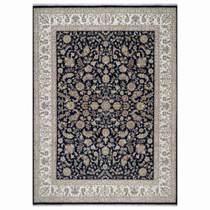 8'9"x12' Graphite Blue, Hand Knotted, Nain With All Over Flower Design, Soft Pile, 250 Kpsi, Wool And Silk, Oriental Rug FWR546204