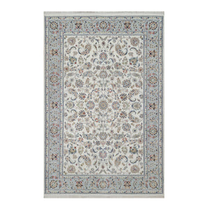 6'x9' Spring White, Hand Knotted, Nain With All Over Flower Design, 250 Kpsi, Wool And Silk, Oriental Rug FWR546294