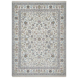 10'2"x14' Alabaster White, Wool And Silk, Nain With All Over Flower Design, 250 Kpsi, Hand Knotted, Oriental Rug FWR546342