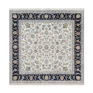 10'2"x10'2" Alabaster White, 250 Kpsi, Nain With All Over Flower Design, Wool And Silk, Hand Knotted, Square, Oriental Rug FWR546474