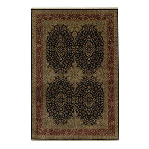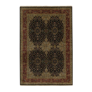 6'x9'1" Caviar Black, Intricate Kashan Revival, Hand Spun New Zealand Wool, 300 Kpsi, Hand Knotted, Oriental Rug FWR548610