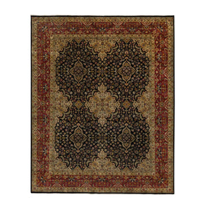8'x9'10" Jet Black, Hand Knotted, Intricate Kashan Revival, Hand Spun New Zealand Wool, 300 Kpsi, Oriental Rug FWR548604