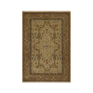 4'1"x6' Ecru Brown, Tabriz Revival, 300 Kpsi, Hand Spun New Zealand Wool And Silk, Denser Weave, Hand Knotted, Thick And Plush, Oriental Rug FWR548634