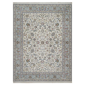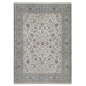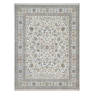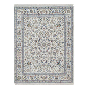 9'1"x12' Pristine White, Hand Knotted, Nain With All Over Flower Design, 250 Kpsi, Wool And Silk, Soft Pile, Oriental Rug FWR549294