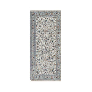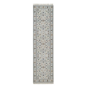 2'8"x10'2" Pearl White, Hand Knotted, Nain With All Over Flower Pattern, Wool And Silk, Soft Pile, 250 Kpsi, Runner, Oriental Rug FWR549348
