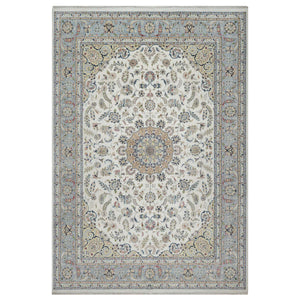 9'9"x14'1" Pearl White, Wool And Silk, Nain With Flower Medallion Design, 250 Kpsi, Soft Pile, Hand Knotted, Oriental Rug FWR549618