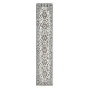 2'10"x14'6" Alabaster White, Nain With Flower Medallion Design, 250 Kpsi, Wool And Silk, Soft Pile, Hand Knotted, Xl Runner, Oriental Rug FWR549684