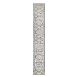 2'9"x21'8" Pristine White, Nain With All Over Flower Pattern, Wool And Silk, Hand Knotted, Soft Pile, 250 Kpsi, Xl Runner, Oriental Rug FWR549714