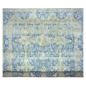 17'7"x26'4" Admiral Blue, Wool And Silk, Distinct Abrush, Persian Repetitive Design, Shaved Low, Mansion Sized, Hand Knotted, Xl, Oriental Rug FWR454398