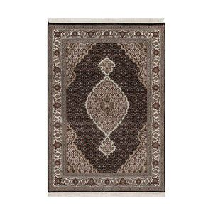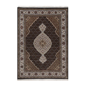 5'x7' Ink Black, Tabriz Mahi With Fish Medallion Design, 175 Kpsi, 100% Wool, Hand Knotted, Oriental Rug FWR549522