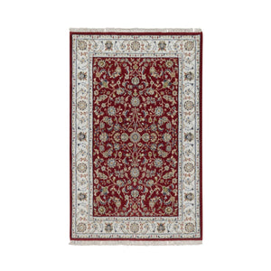 4'x6'1" Rhubarb Red, Nain With All Over Flower Pattern, 250 Kpsi, Wool And Silk, Hand Knotted, Soft Pile, Oriental Rug FWR549828