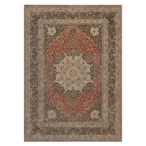 10'x14' Brick Red, Antiqued Tabriz With Haji Jalili Design, Hand Knotted, 100% Wool, Vegetable Dyes, Soft Pile, Denser Weave, Oriental Rug FWR551736