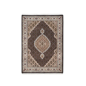 3'10"x6' Hand Knotted Black Tabriz Mahi Fish Medallion Design Wool Oriental Rug FWR375714