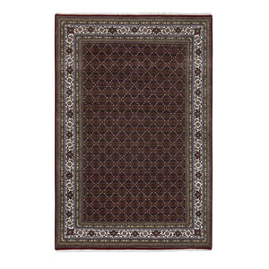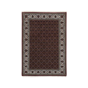 4'x5'10" Rich Red Hand Knotted 175 Kpsi Wool And Silk Herati With All Over Design Oriental Rug FWR384744
