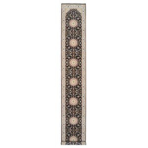 2'7"x16'4" Midnight Blue, Hand Knotted, Nain With Flower Medallion Design, 250 Kpsi, Wool, Oriental Xl Runner Rug FWR388428