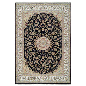 9'10"x14'3" Midnight Blue, Hand Knotted, Nain With Flower Medallion Design, Wool, 250 Kpsi, Oriental Rug FWR388464