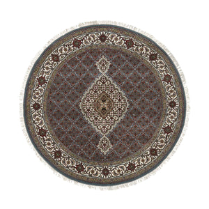 5'x5' Light Gray, Extra Soft Wool, Hand Knotted, 175 Kpsi Tabriz Mahi With Fish Medallion Design, Round Oriental Rug FWR390726
