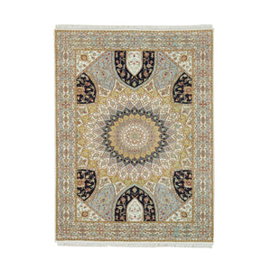4'x6'1" Ivory, 100% Wool Hand Knotted, Nain With Gumbad Design, 250 Kpsi Densely Woven, Oriental Rug FWR391848