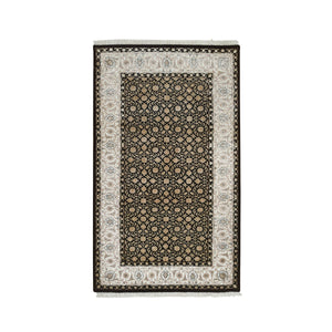3'1"x5'5" Eerie Black, 250 Kpsi Densely Woven, Organic Wool Hand Knotted, Herati With All Over Fish Mahi Design, Oriental Rug FWR391872
