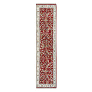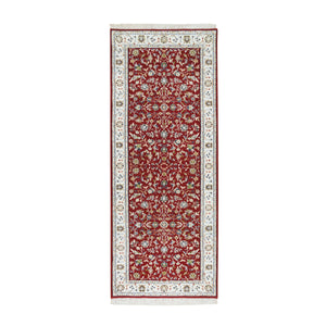 2'7"x10'5" Cherry Red, Hand Knotted Nain With All Over Flower Design, 250 Kpsi Extra Soft Wool, Runner Oriental Rug FWR392214