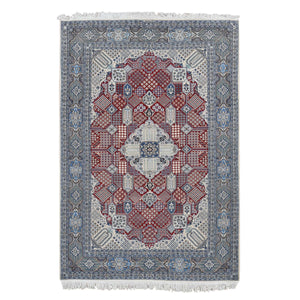 4'1"x6'4" Ajax Red, Kashan Design, 400 Kpsi, Pure Silk, Hand Knotted, Oriental Rug FWR485358